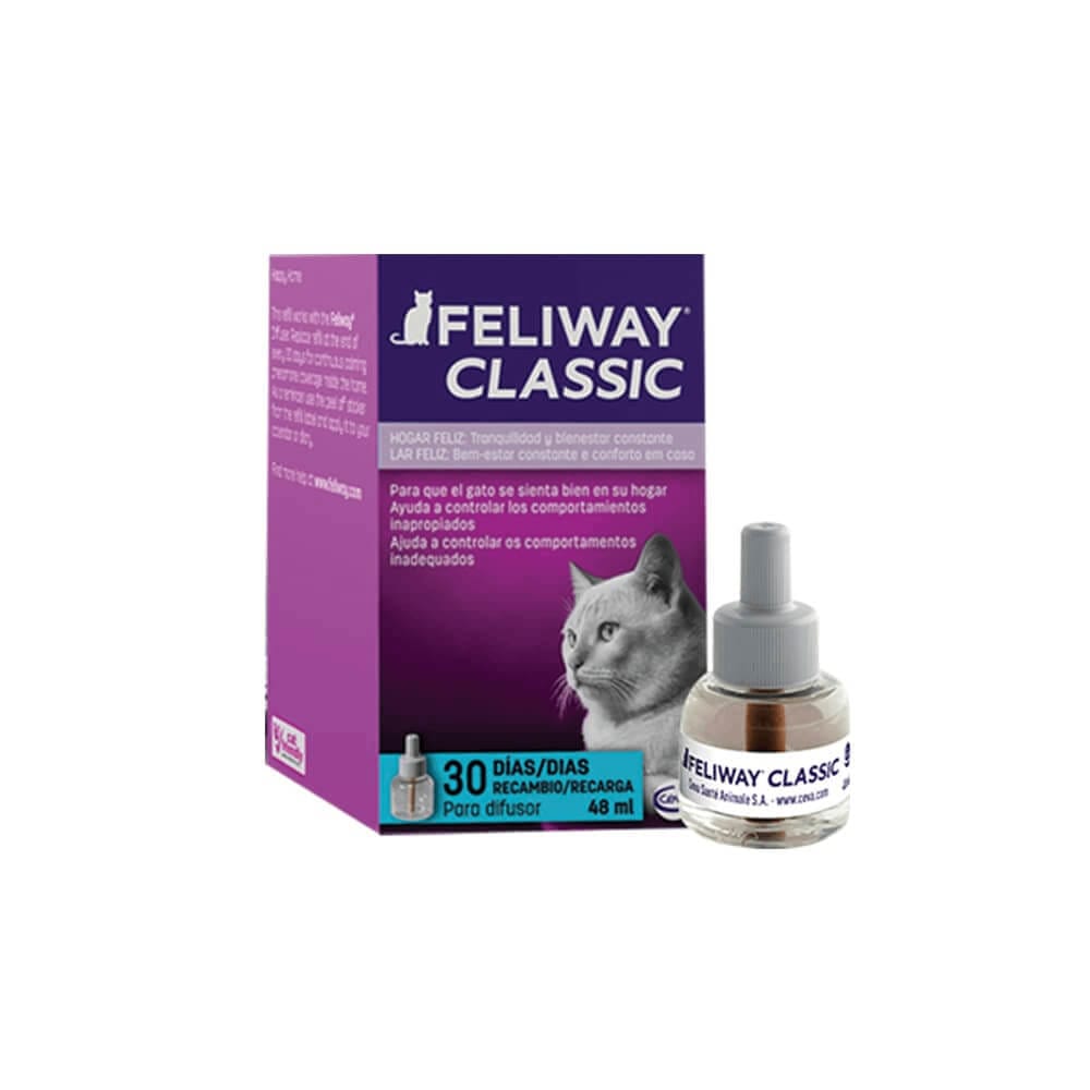 - ¡Enchúfalo y listo! Enrosca el recambio en el difusor y conéctalo a un enchufe en la habitación favorita de tu gato.